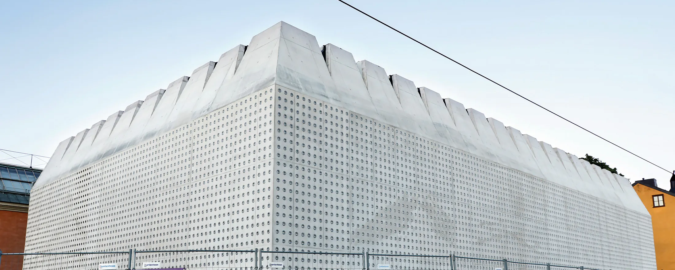Jag försöker greppa dess på platsgjutna betongmäktighet. Den ljusgrå fasaden där 6 860 flaskbottnar fogats in för att skimra när molnen lättar. Taket som rymmer 166 ljusinsläppande lanterniner och från sidan ser ut som stiliserade ryggfjäll på en ofantlig reptil. Det avlånga perspektivfönstret på bredsidan som ligger liksom sjunket och vilande mot marken. Tänker: Wow, så här kompromisslös kan en konstkåk vara. Den är döpt till Liljevalchs+. Ett passande namn för en verkligt vågad addition.