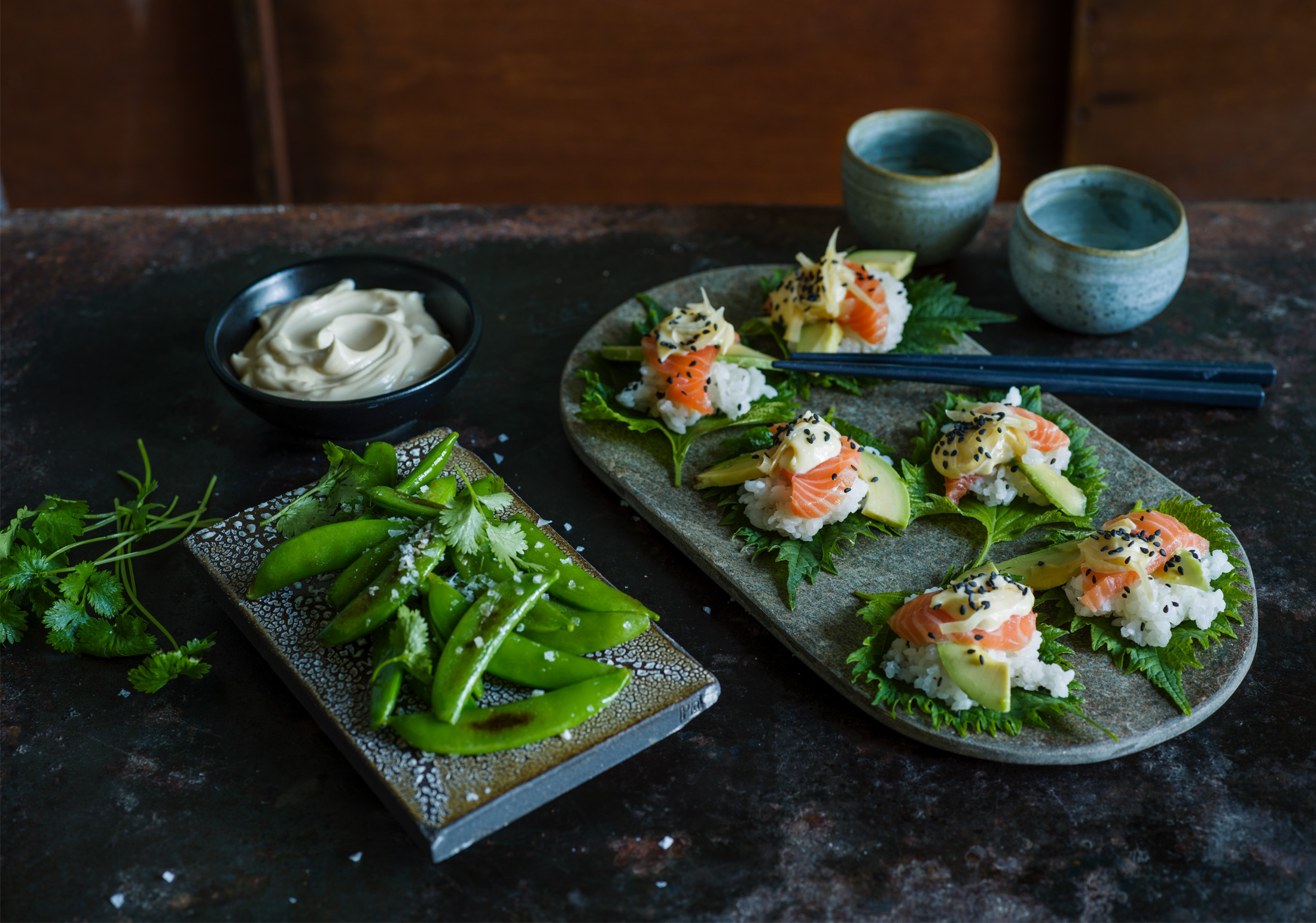 - Rör ihop majonnäs och soja och servera som dippsås till. Garnera gärna med koriander.