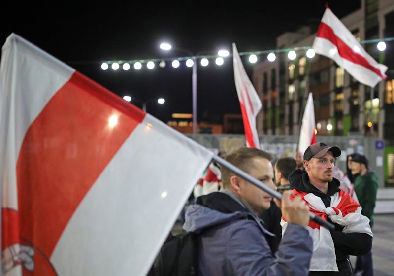 På tv-nyheterna ser vi bilder från demonstrationerna i Belarus huvudstad Minsk. Folk viftar med vit-röd-vita flaggor. Vad står de för?