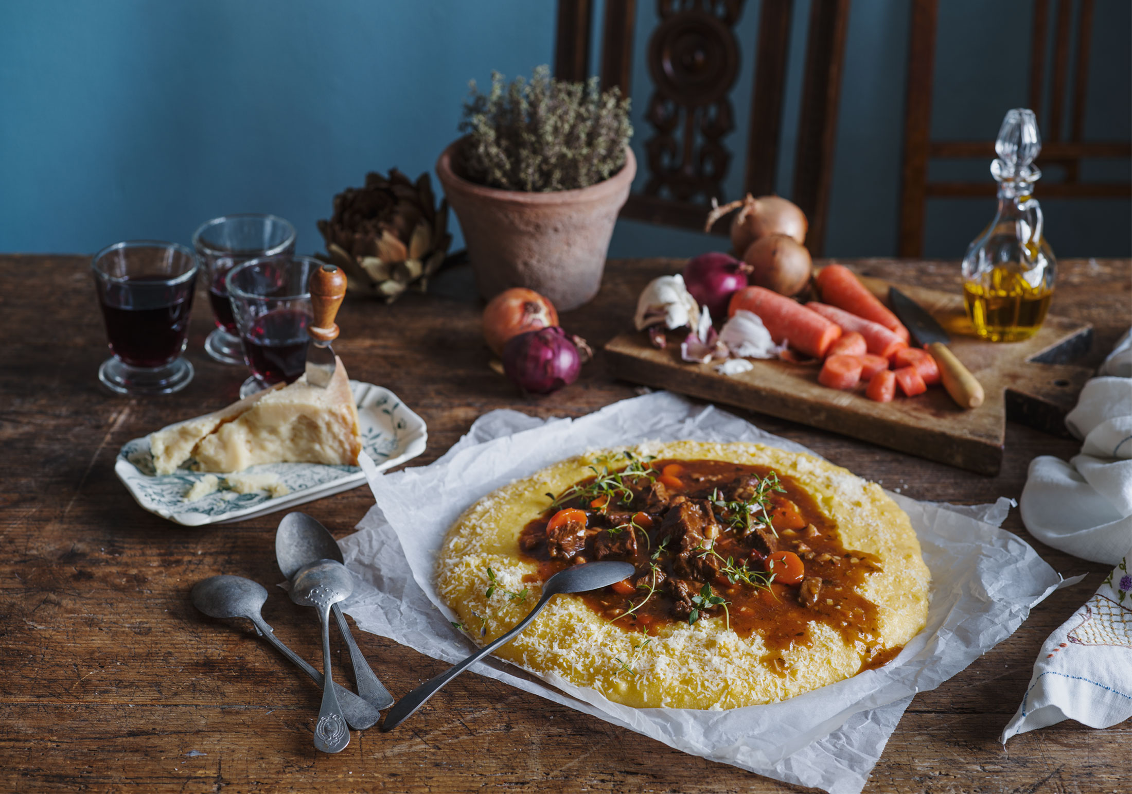 - Servera köttgrytan med polentan och lite extra riven parmesan.
