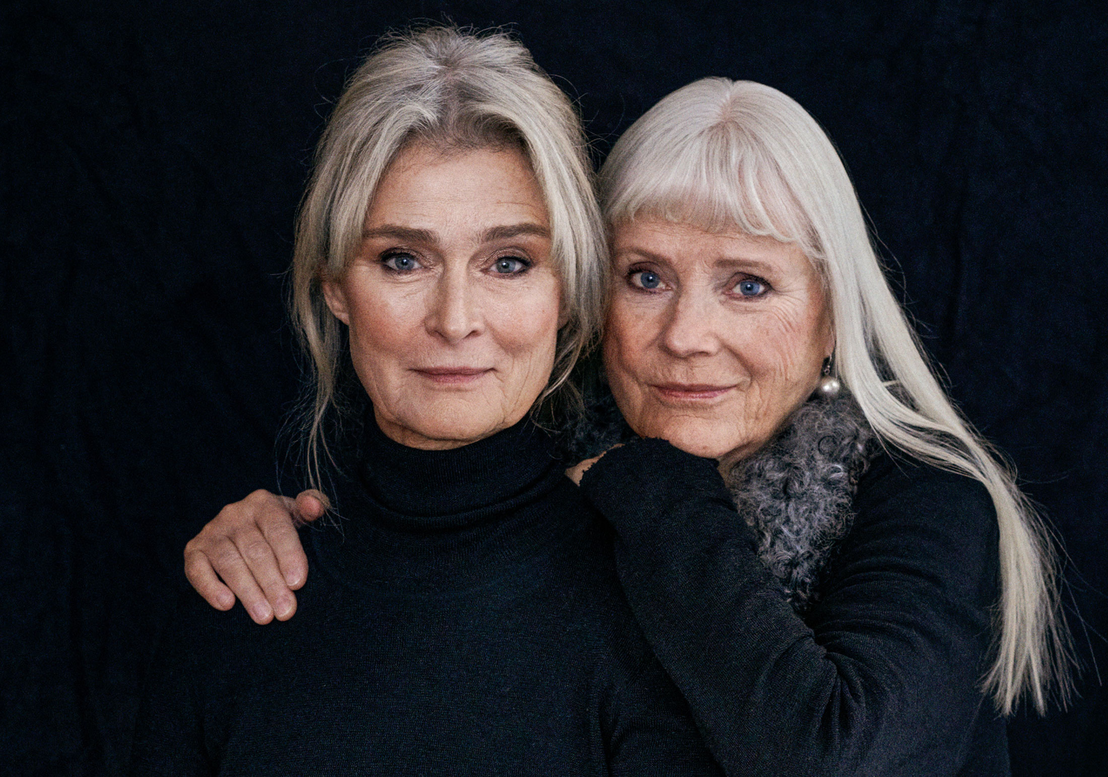 Dags för fotografering. De första bilderna smattrar av. Vi:s fotograf Ewa-Marie Rundquist säger: ”Lena, du kan ju hänga lite på Ulla, det blir bra. Men inga rörelser på mun.”