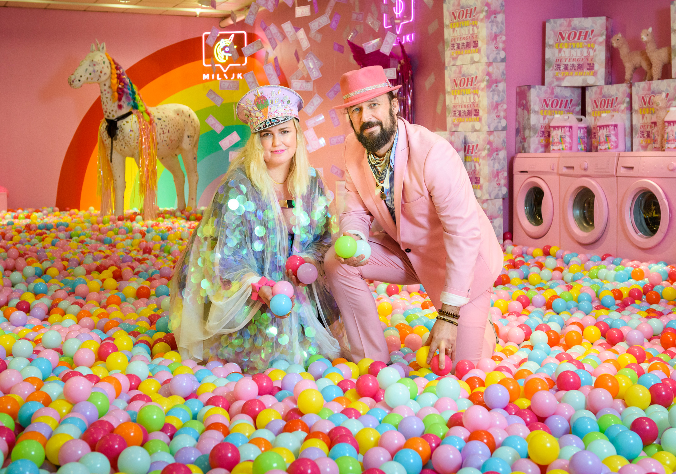 Flamingopool, enhörningslaboratorium, färgsprakande fotobås och peruker i regnbågens alla färger. Så ser det ut på Sveriges första selfiemuseum: Milajki. En extremt fotovänlig fantasivärld skapad av äkta makarna Angelina och Pierre Edström.