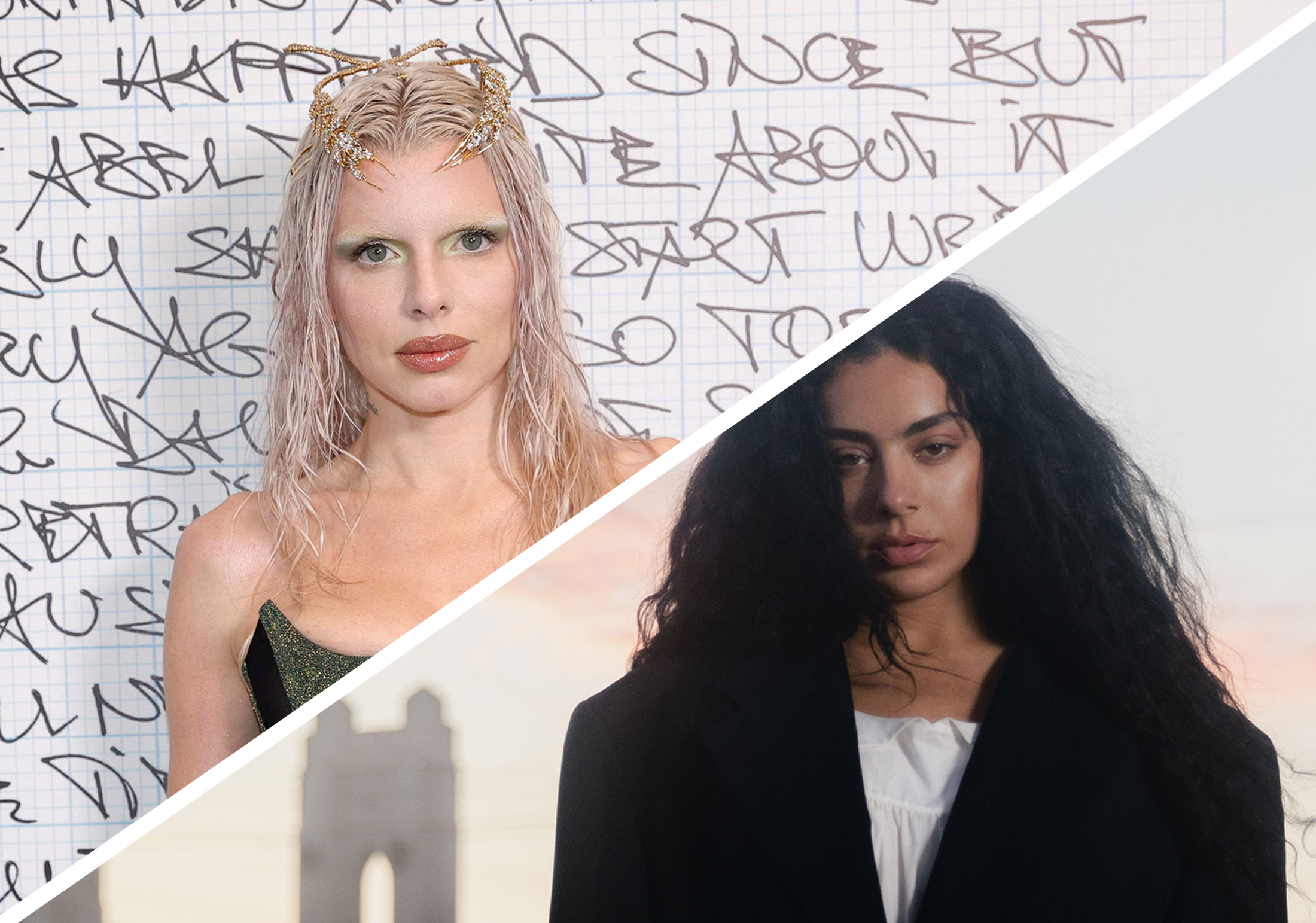 Montage. Julia Fox och Charli XCX. // Foto: Geoffroy Van der Hasselt, Terrence O'Connor.